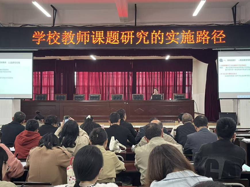 为进一步提升教师的教科研能力,将教师在日常教育教学中的困惑进一步深化研究从而转化为课题,并有效破解课题研究中的难点和困惑,助力教师顺利开展课题研究并产出高质量研究成果,紫溪中学于2025年10月24日邀请楚雄州中青年学术技术带头人、楚雄州名教师、楚雄市教师培训中心中学地理学科教研员林寅老师为全校专业技术人员开展了《学校教师课题研究的实施路径》的专题讲座培训。