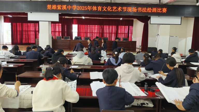 书法绘画展演成为本次体育文化艺术节的又一亮点。同学们气定神闲,挥毫泼墨,神情专注,笔走龙蛇。楷书工整如松,行书流畅如水,隶书古朴典雅,绘画色彩缤纷、形象生动、充满创意......一幅幅作品在笔下诞生,传递着中华优秀传统文化的魅力,也展现了紫溪学子的艺术追求。