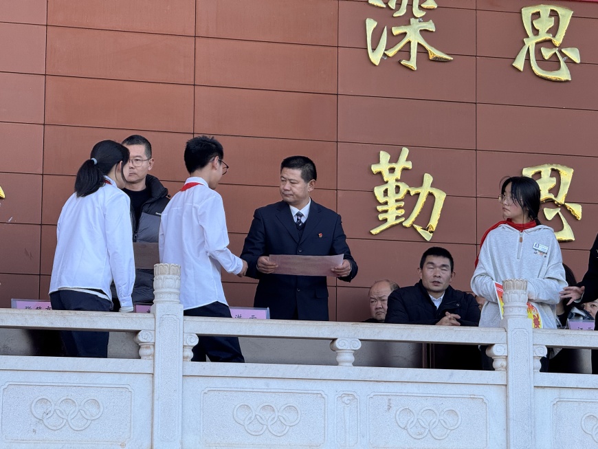 洪校长在闭幕式上向全体获奖师生致以热烈祝贺,向全体裁判员、工作人员和师生致以诚挚谢意,宣布2025年学校体育文化艺术节暨冬季田径运动会顺利闭幕。