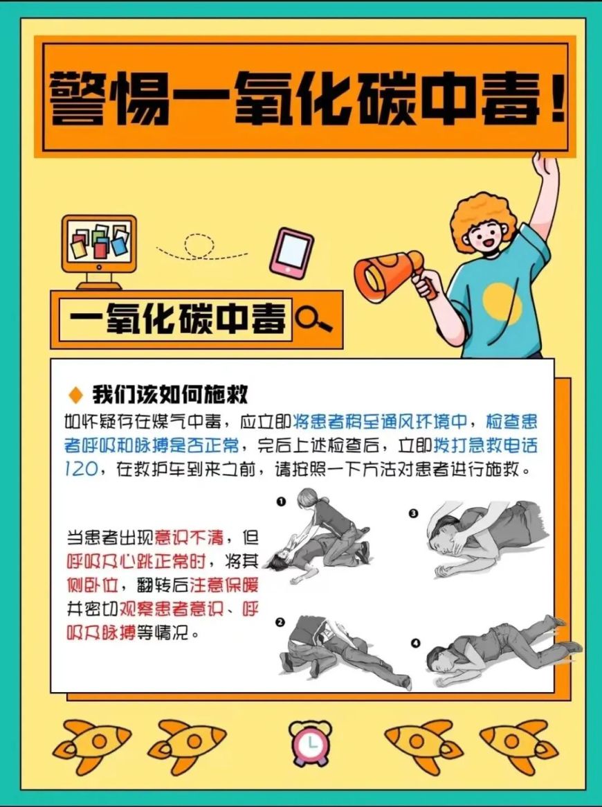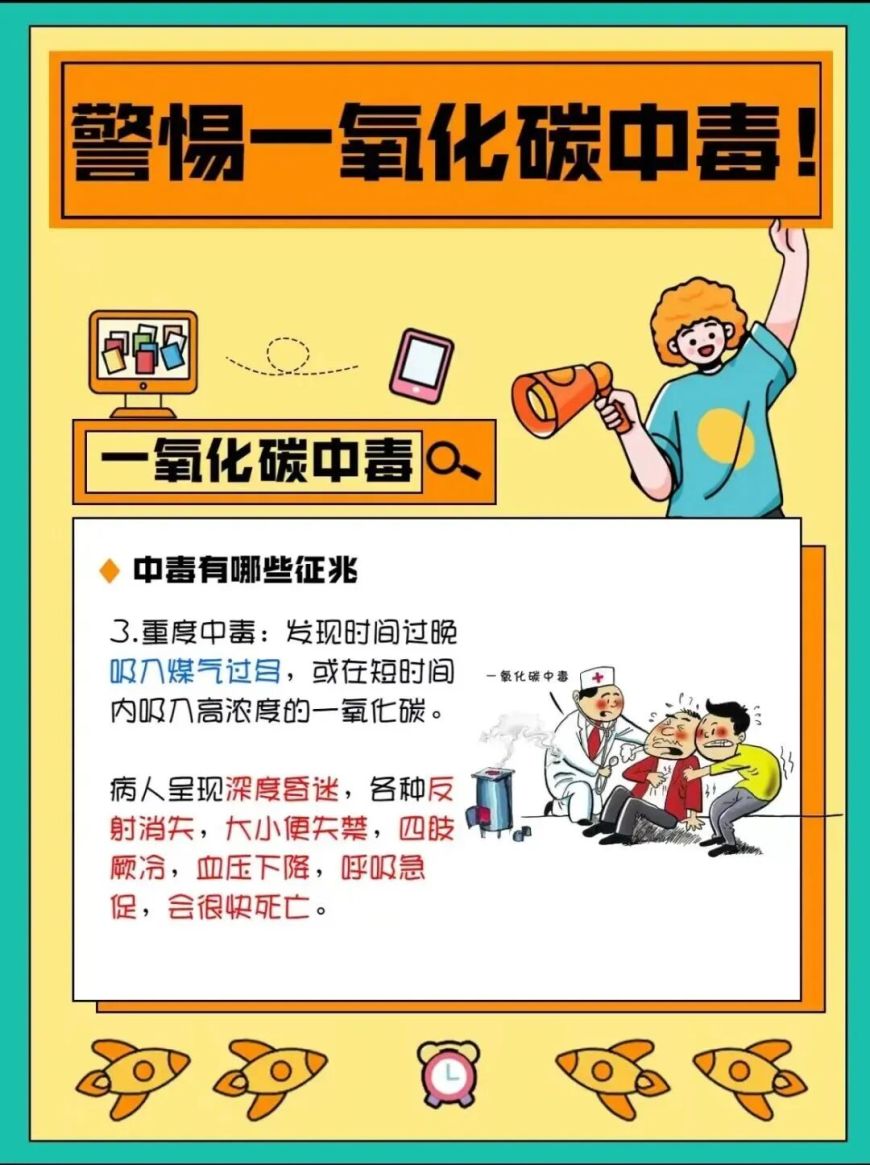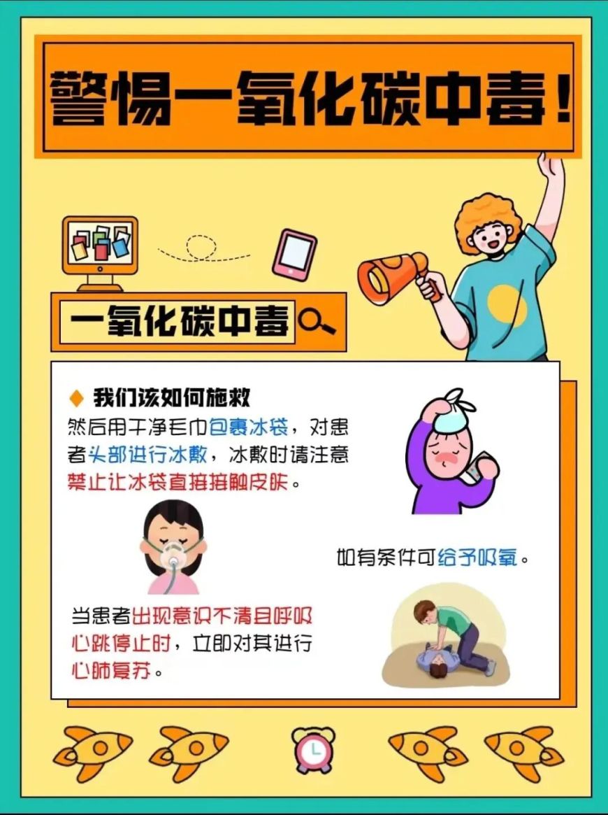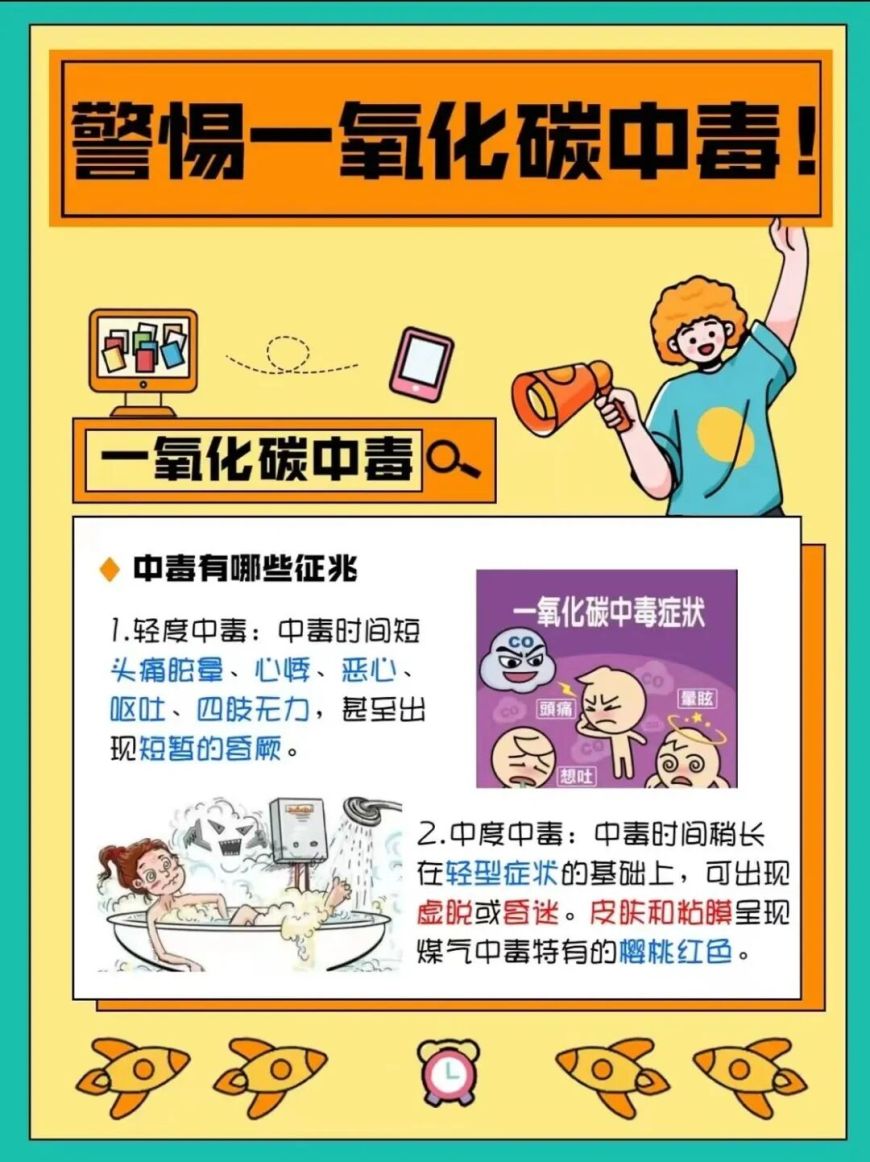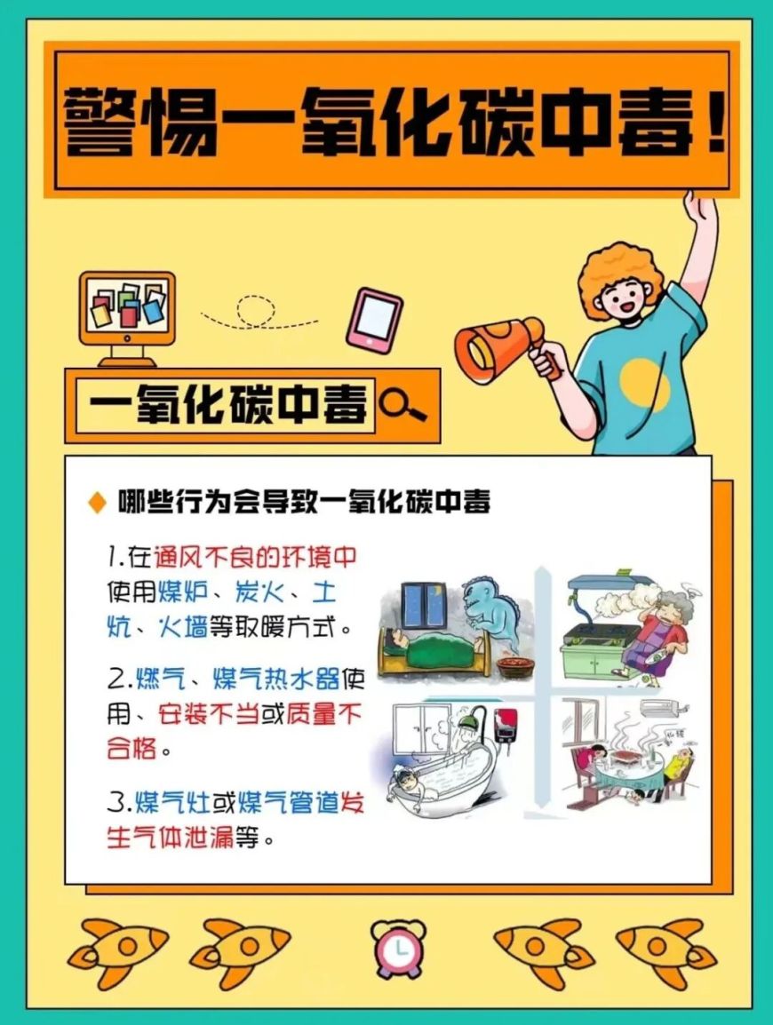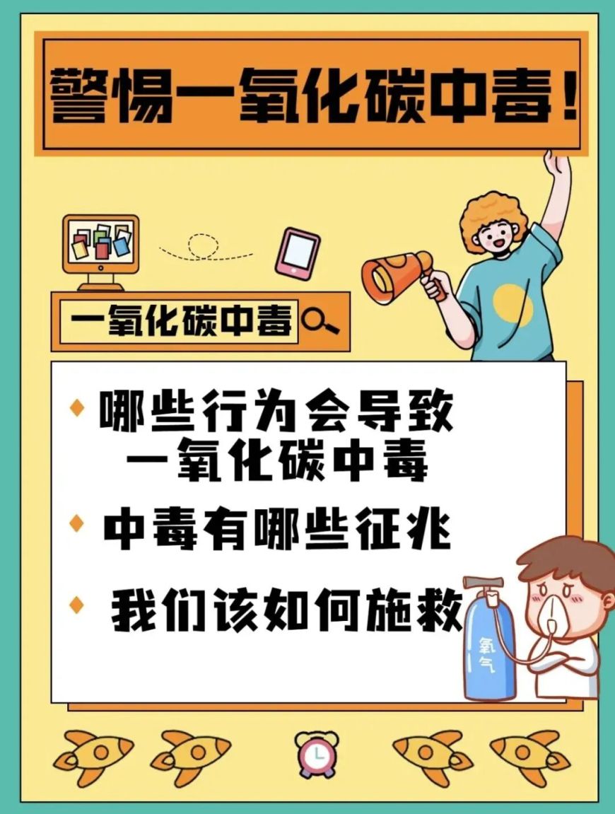 您好!进入冬季,一氧化碳中毒(俗称煤气中毒)事故多发易发,请家长们高度重视,为保证您和孩子的生命安全,希望您注意做好家庭预防一氧化碳中毒及孩子安全教育工作。