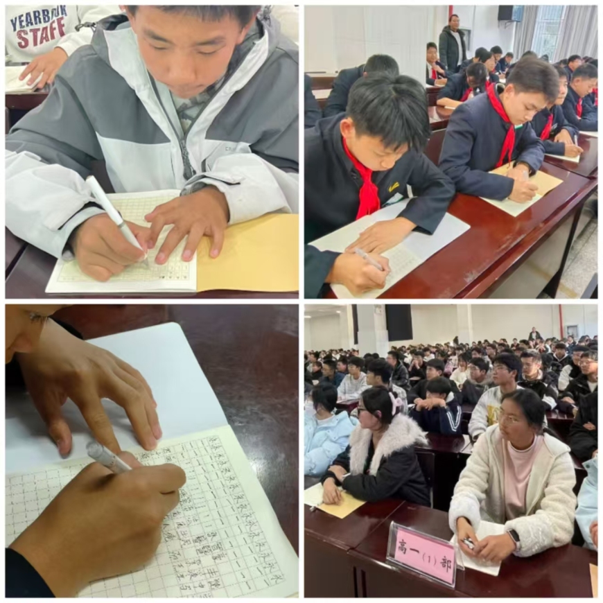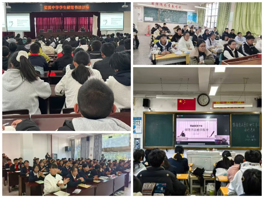 弘扬中华传统文化,提升语文核心素养,落实立德树人根本任务,紫溪中学一直在行动。12月19日,我校美术骨干教师刘峰为非毕业班两千余名学生做了硬笔书法专题讲座。本次讲座既是楚雄市 2025 年“筑牢中华民族共同体意识 推广国家通用语言文字” 主题宣传教育进校园活动的具体实践,也是我校“弘扬中华文化 提升语文素养”系列活动的开篇之举,更是推进“书香校园”建设的重要抓手。