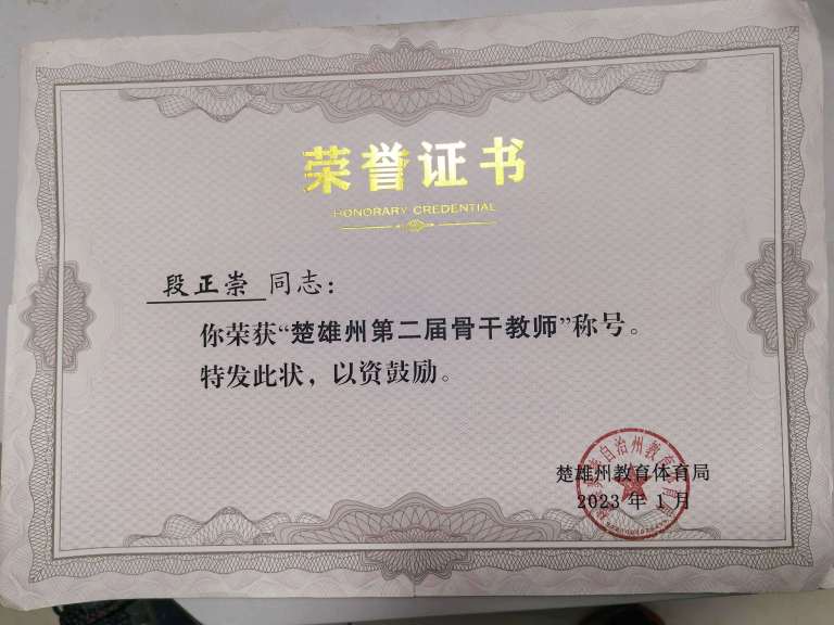 3.多次获得楚雄紫溪中学优秀班主任称号;