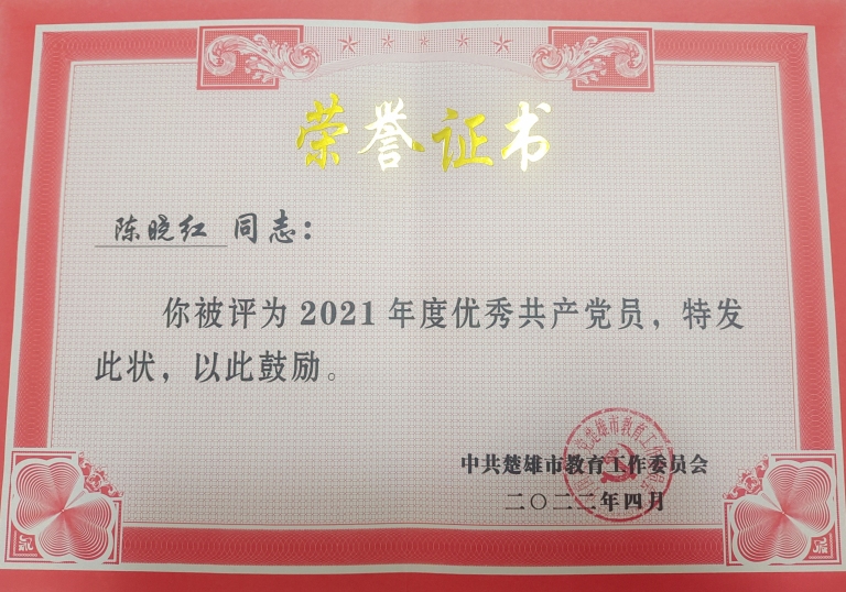 3.个人多次荣获市级优秀教师、市级优秀共产党员、省级优秀指导教师、校级教学能手、教研先进个人、优秀班主任、巾帼教坛新秀等荣誉称号,在青蓝结对工程中助力青年教师成长。