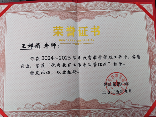 3.多次被评为学校优秀班主任、优秀教育工作者及管理者。