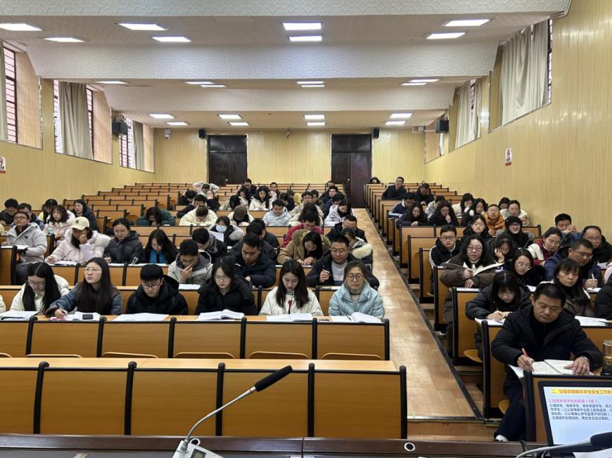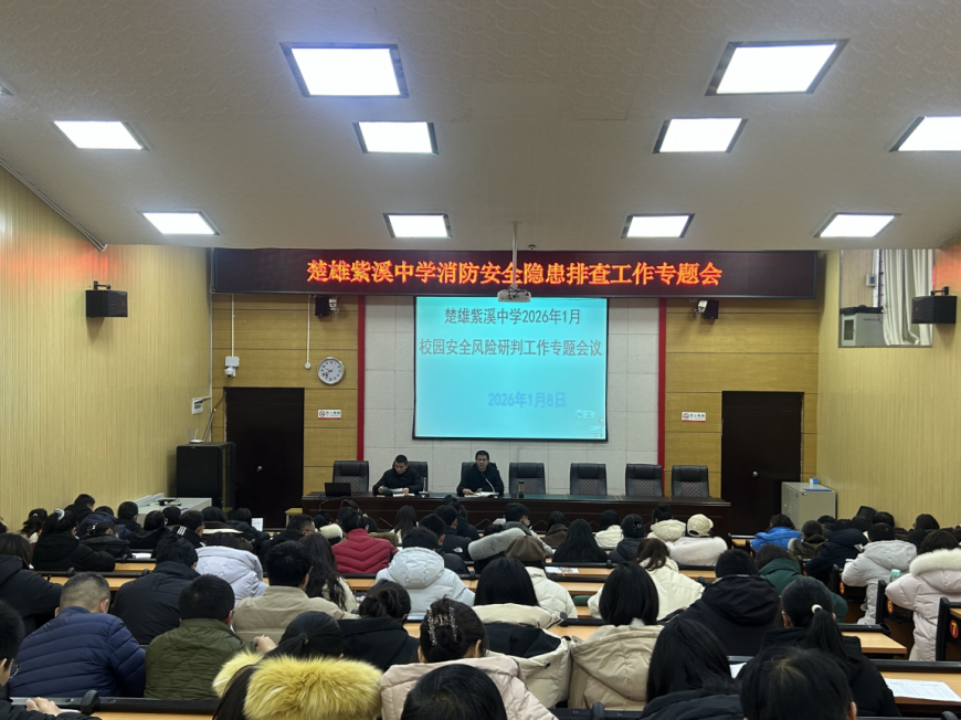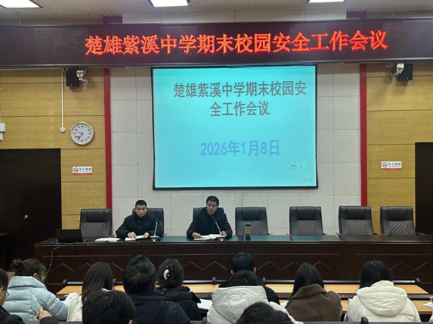 安全工作无小事,期末阶段尤其关键。2026年1月8日上午楚雄紫溪中学召开期末校园安全工作会议,各年级负责人、处室主任及全体班主任参会。会议要求各年级组,全体年级负责人,全体班主任要高度重视,协同配合,以高度的责任感将各项安全工作做细、做实、做到位,全力保障学生生命财产安全,维护校园和谐稳定,为期末阶段的校园安全、学生安全奠定坚实基础。