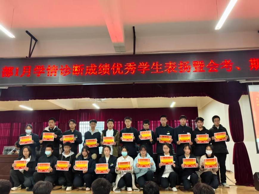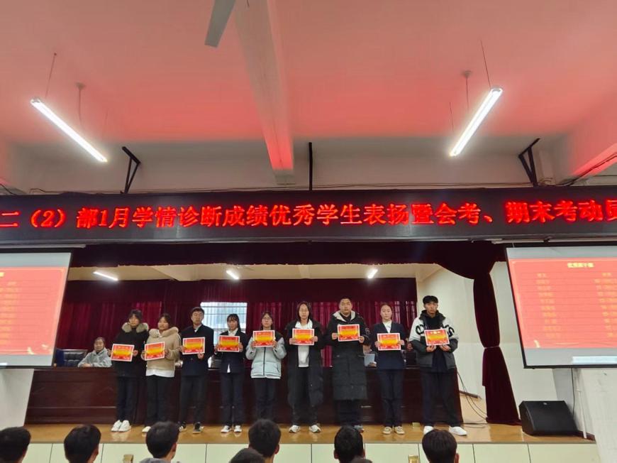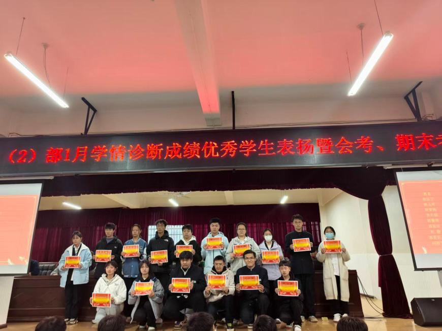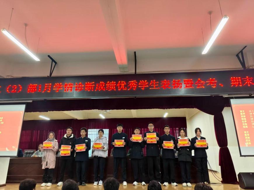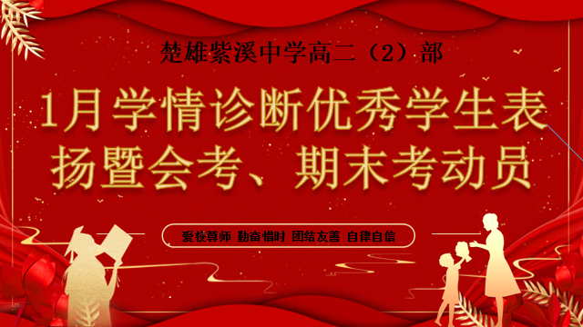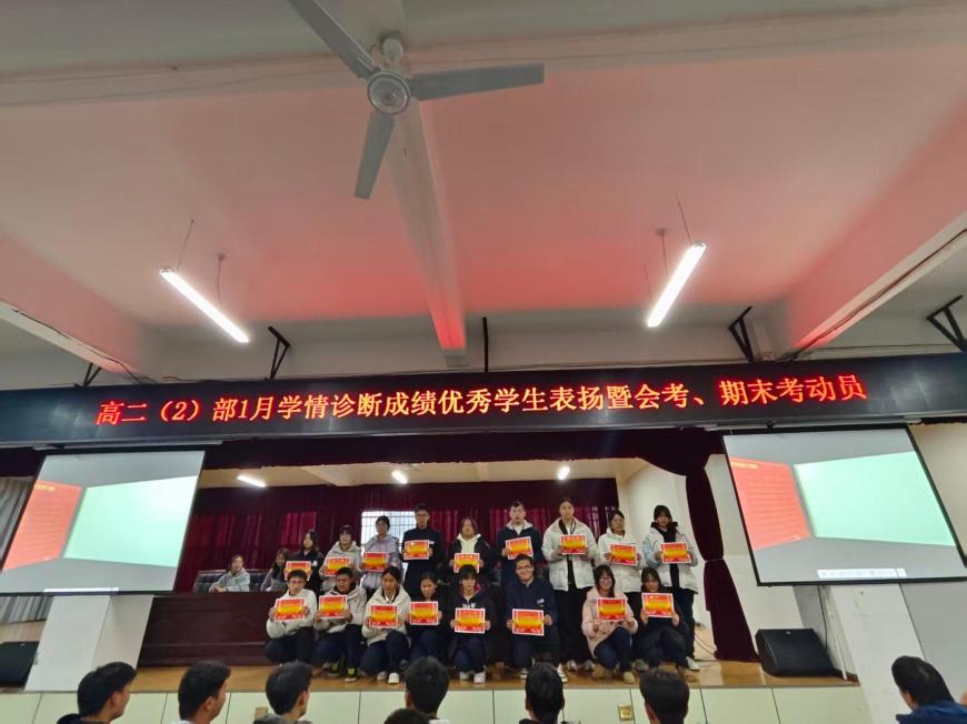 为表彰先进、树立榜样,激发学生学习热情,调适心态,为会考与期末考试蓄力,楚雄紫溪中学高二(2)部1月18日晚举行1月学情诊断优秀学生表扬暨会考、期末考考前动员大会。