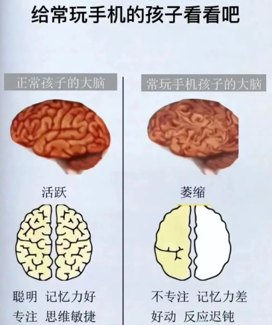 手机辐射再加上长时间低头,孩子大脑里的白质会受损;孩子反应会变慢,脑子不灵光,学东西也会变得吃力。