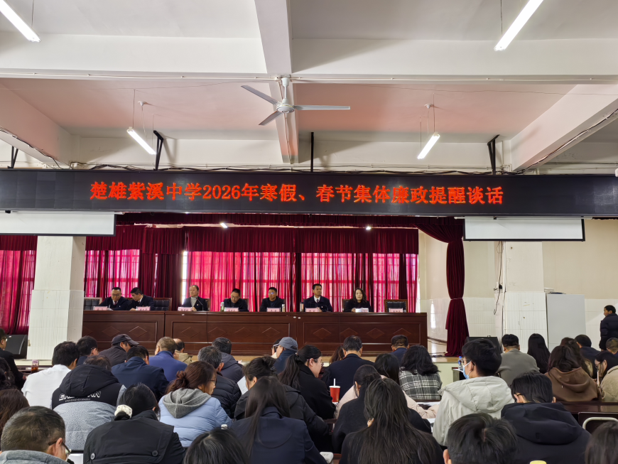 为切实保障全体教职工度过一个安全、文明、廉洁的寒假与春节,进一步压实安全责任、严明纪律要求,2月6日下午15时许,我校召开2026年寒假教职工安全教育大会暨寒假、春节集体廉政提醒谈话会。会议由学校党委书记杨荣琼主持,全体教职工参会,洪云校长作安全教育与廉政建设相关讲话。