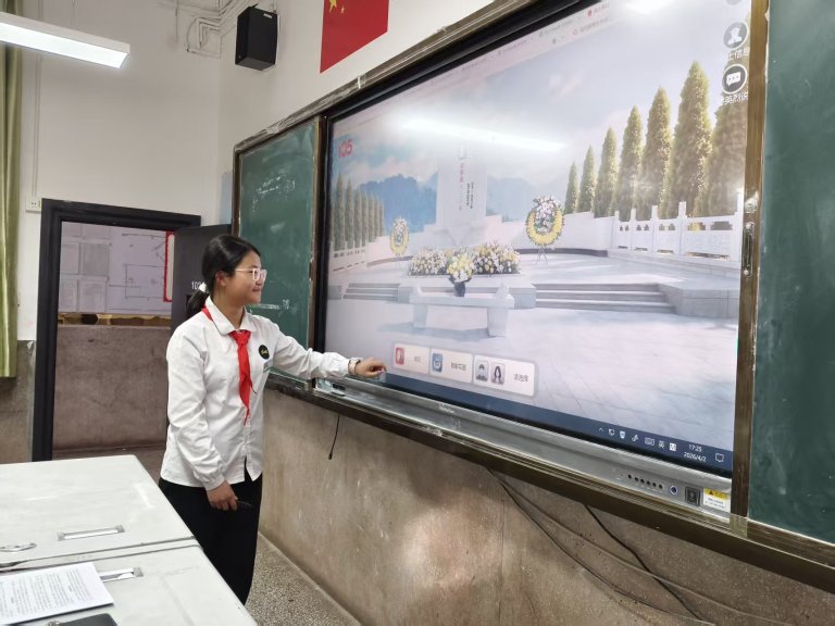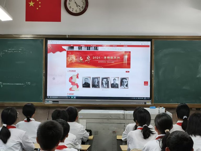 教室里,师生们登录中华英烈网,向革命英烈敬献电子花篮,依次完成“献花”“敬献花圈”“鞠躬”等网上祭扫活动,表达对革命先烈们的无限追思与深切悼念。